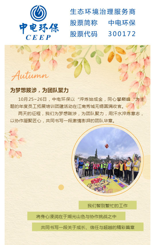中電環保股份有限公司是南京市首家環保上市公司(股票簡稱:中電環保,股票代碼:300172),南京環保產業協會會長單位,國家級聯盟理事長單位,是生態環境治理服務商,主營(3+1):水務、固危廢、煙氣治理及產業創新平臺,包括:工業水處理、污水處理及水環境綜合治理;固危廢土壤、污泥餐廚垃圾處理;煙氣及VOCS治理;智慧環保;高端裝備等。